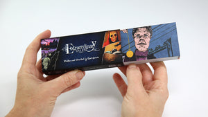 This flip book features six animated sequences from the movie, yielding an impression into the stories of some of the most beloved figures in horror film history: The Fall of the House of Usher, The Tell-Tale Heart, The Facts in the Case of M.Valdemar, The Pit and the Pendulumand The Masque of the Red Death.